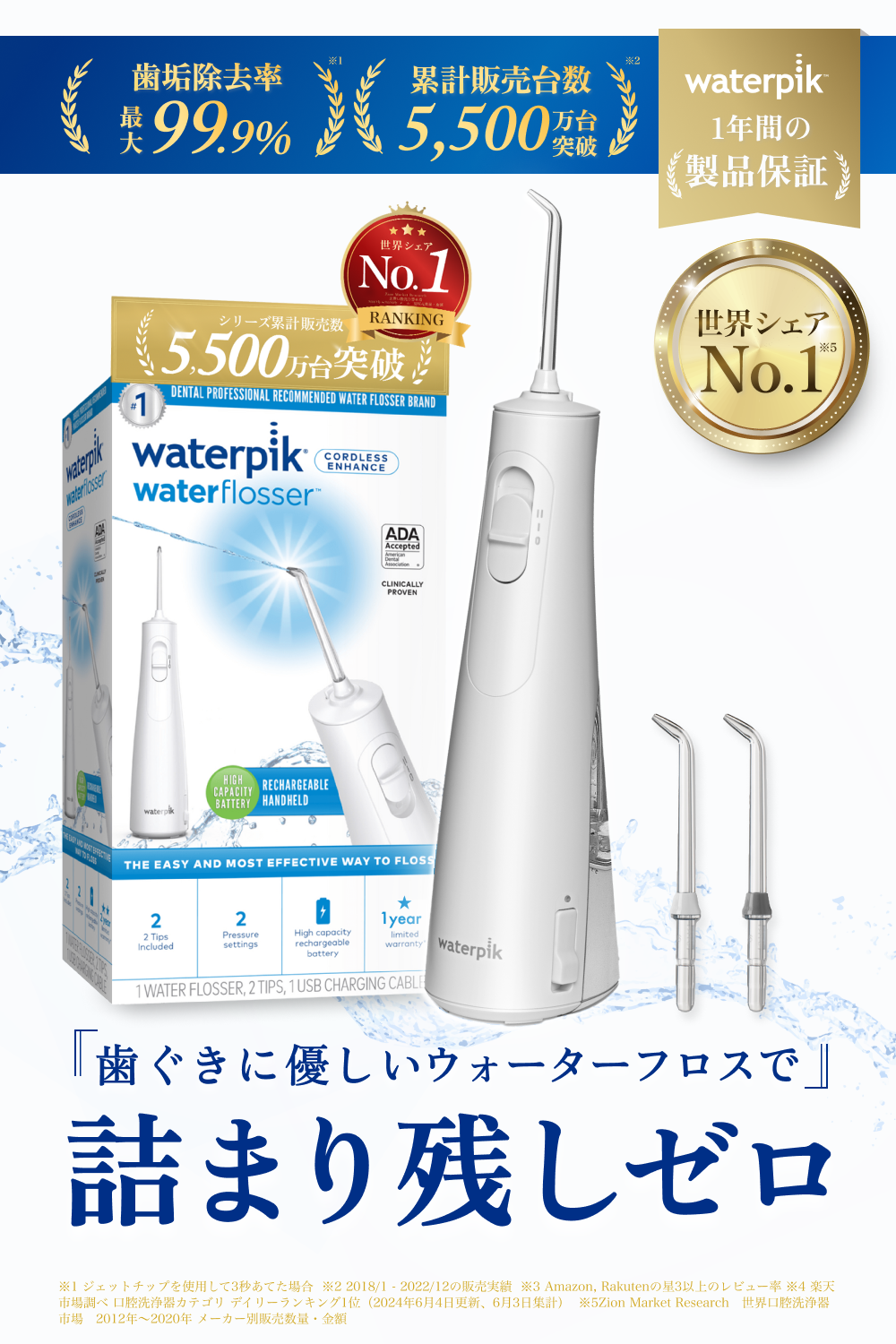 4世帯に1世帯が持っている**、世界で最も売れている口腔洗浄器***。