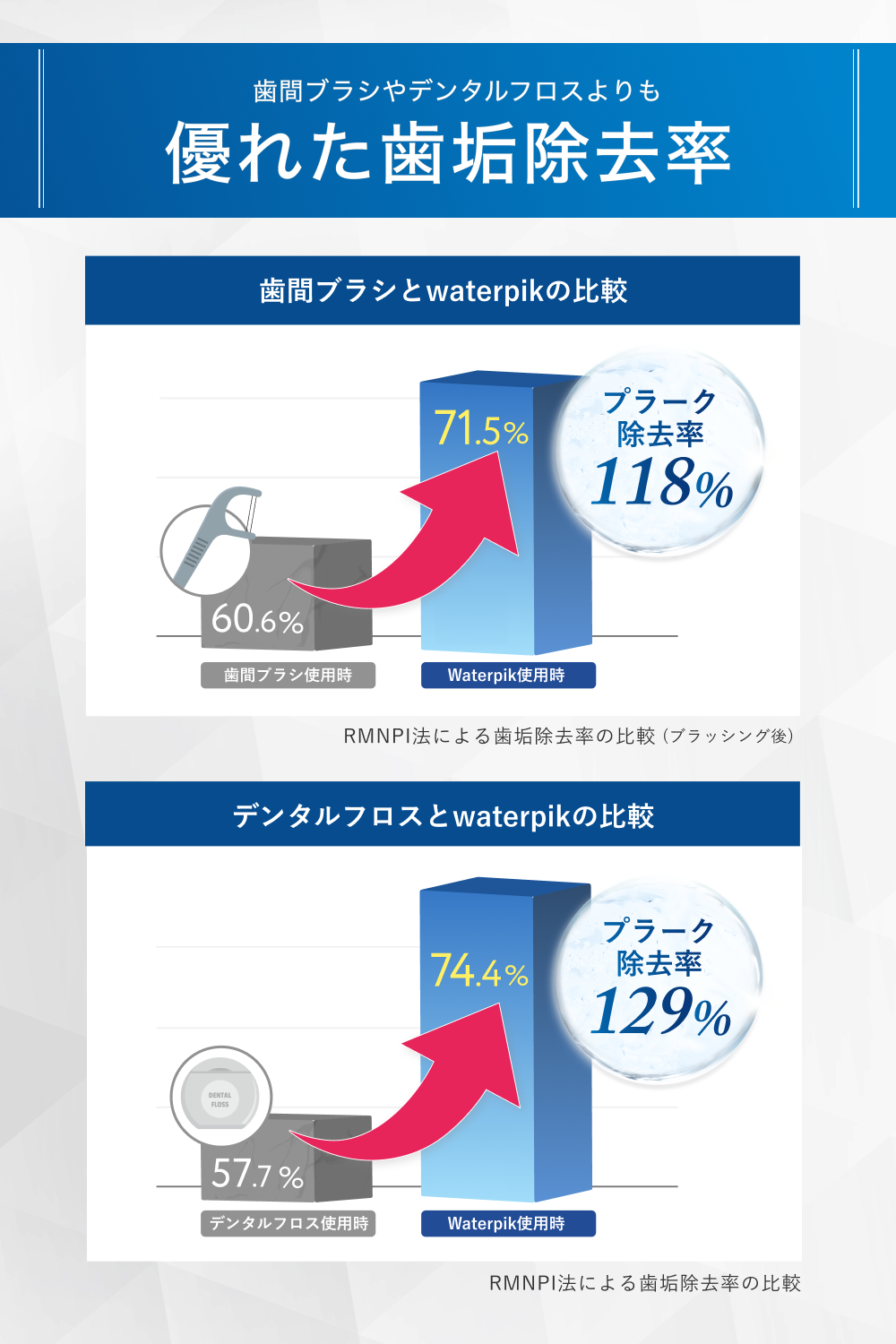 **RMNPI法による歯垢除去率の比較